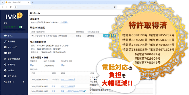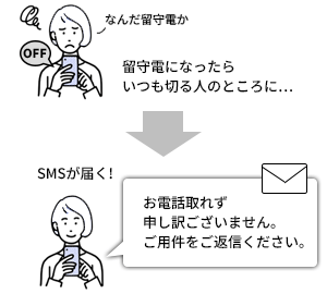 携帯電話のお客様にはSMSのやり取りをし、固定電話のお客様には電話代行に転送します。→詳しくはこちら