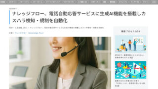 お知らせ 業界初、生成AIで【カスハラ検知&規制】を完全自動化 ──(株)ナレッジフローが「IVR+」に最先端のAIソリューションを搭載 業界初※、生成AIで【カスハラ検知&規制】を完全自動化 ──(株)ナレッジフローが「IVR+」に最先端のAIソリューションを搭載 株式会社ナレッジフロー(本社:東京都新宿区、代表取締役:林 良生、以下「ナレッジフロー」)は9月11日、... 2025.09.11 お知らせ