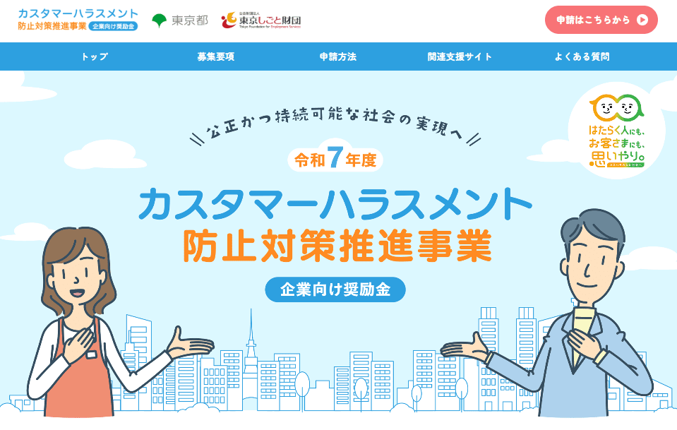 東京都は2025年9月24日(水)から、「令和7年度カスタマーハラスメント防止対策推進事業 企業向け奨励金」の第2回受付を開始しました。
